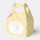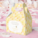 Gable end favour boxes with a yellow honeycomb design and space for personalisation.