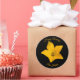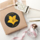 This sticker features a photo of a yellow squash blossom with a bee in the centre on a black background. The words, "Happy Birthday," are curved around the top edge. Around the bottom edge are the words, "Bee Happy." The design and the words can be changed to your own if desired. If you need help personalising, you can contact me at jen@jenaleefamilystorykeeper.com