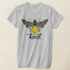 This t-shirt design features an ornate bee on the front with the work "kind" written below in a script font. The bee design is black and yellow on a grey t-shirt.
