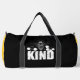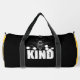 This striking black duffle bag features a detailed illustration of a bee above the bold text "KIND," surrounded by honeycomb patterns. It’s a powerful and simple message, advocating for kindness and appreciation for nature's pollinators. Perfect for those who support bee conservation or simply want to spread positivity. Edit colour of the bag caps and body in the Design tool to your favored colours.