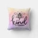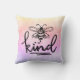 Bee kind hand drawn word art quote on distressed rainbow ombre background.