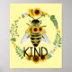 Bee Kind Sunflowers Kindness Yellow Class Poster