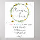 Mimosa Bar sign featuring a watercolor wreath of greenery and yellow flowers with buzzing bees and the words Mimosa bar in a fun calligraphy script.