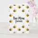 This greeting card features the sweet message “Bee Mine forever” right in the center in a flowing script style. The words are easy to read and stand out against a white background. All around the text, there’s a repeating pattern of cute little honeybees with yellow bodies and black stripes. Each bee has small see-through wings outlined in black, tiny antennae with round tips, and a friendly smile with pink cheeks. Some of the bees are winking, which adds a flirty, affectionate feel without being over the top. Small pink hearts are sprinkled between the bees, tying the whole design to romance and friendship ❤️
