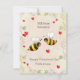 This cute card features two bumble bees in a garden of flowers around the outside edge. Little red hearts are scattered about. Card reads "BEE Mine Valentine!" Below it says Happy Valentine's Day and you personalise it with your child's name.