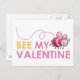 This cute Valentine's day gift reads "Bee My Valentine" in pink and gold and features a cute cartoon illustration of a sleepy pink bumblebee.