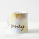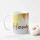 Honey bee on a pink flowers of a Japanese cherry tree - sakura. The beauty of spring season. Soft pink and yellow colours. Prints and gifts for anyone. Coffee mug. You can change or delete the template text Honey. Do not forget to choose another style of the mug, including a travel mug and a beer stein.