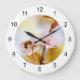 Honey bee on pink flowers of a Japanese cherry tree - sakura. The beauty of the spring season. Soft pink and yellow colors. Round wall clock to decorate your home of office. A good gift for any occasion.