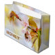 Honey bee on a pink flowers of a Japanese cherry tree - sakura. The beauty of spring season. Soft pink and yellow colours. Prints and gifts for anyone. Horizontal gift bag. You can change or delete the image and the template text Honey.