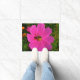 This door mat has a picture of a flower with a bee on it.