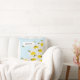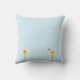 Bee on flower throw pillow on a blue background. Customise the pillow with a special name or text, background colour among other options.