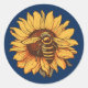 Bee on sunflower classic round sticker