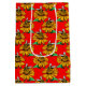 Bee on Sunflower Flower Pattern Design Red Medium Gift Bag