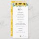 A menu card perfect for a bee-themed baby or bridal shower. Featuring a watercolor buzzing bee and sunflowers. Customise with your menu text for a brunch, luncheon or dinner.
