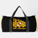This inspiring black duffle bag features a vibrant honeycomb graphic with a central bee and the encouraging message "Bee the change". The playful pun and positive theme make it a perfect accessory for advocates of change or bee enthusiasts. Carry your essentials while spreading a message of transformation and positivity. Edit colour of the bag caps and body in the Design tool to your favored colours.