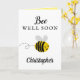 Send a special greeting with this cute bee well soon card. The name on the front can easily be personalised for that special person and the inside of the greeting card is blank for you to hand write a personal message.