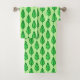 Towel set in a mixed media digital design based on a stylised beech leaf - Dark emerald green and medium green on a light lime green background