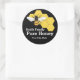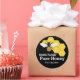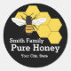 A graphic illustration of a honeybee and honeycomb by artist/designer Charmaine Paulson on a jar label.