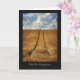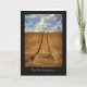 A fine art condolence card featuring a breathtaking view over a wheat field to the horizon and beyond. A trail of tractor-flattened wheat leads from beyond the horizon to the front of the scene, curves around and heads straight back over the horizon. A dramatic sky casts it's shadows across the field and suggests brighter times on the other side of the horizon.
