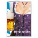 Fun birthday greeting card for guys showing a chesty German barmaid holding a mug of beer. White text reads, for your birthday I hope you get a few of your favourite things. Personalise the text to read anything you want.
