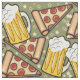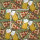 Beer Mugs and Pizza Slices with Cheese and Pepperoni and light beige stars in a Dijon green. You can customise the colour to any choice you want. Great idea gift for him!