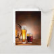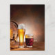 Beer barrel with beer glasses on a wooden table 2 postcard