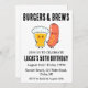 Celebrate your special day with a backyard barbecue and plenty of cheers! This rustic-themed invitation features a delicious-looking burger and a cold beer, perfect for an adult birthday party. The design includes the keywords "cheers," "beers," and "backyard" to help you find the perfect invitation for your celebration.