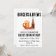 Celebrate your special day with a backyard barbecue and plenty of cheers! This rustic-themed invitation features a delicious-looking burger and a cold beer, perfect for an adult birthday party. The design includes the keywords "cheers," "beers," and "backyard" to help you find the perfect invitation for your celebration.