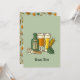 Beer illustration. Bottle, glass, opener, hops and barley. Custom background colour. Custom text.
