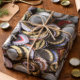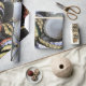 Creative artwork featuring a detailed pattern of colourful bottle caps arranged in a layered composition. Industrial and playful at the same time, this unique style is perfect for distinctive and unconventional gift presentation.
