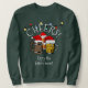 Green Beer Santa Claus Christmas Unisex Sweatshirt for avid beer drinkers at Christmas. At the top, the design says CHEERS! in customisable curved text and at the bottom there is customisable text which says ENJOY FESTIVE BEERS. Both these fields can be personalised with your own greeting, text or name of your group or party. This would make a great contender in your Ugly Christmas Sweater competition or an ideal item for social get-togethers, university clubs, party giveaways or Christmas wedding favours. Buy matching shirts or sweaters for your Christmas office parties and for family celebrations. Available in black and in white.