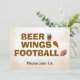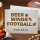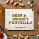 Get ready for the big game with this fun and rustic "Beer Wings Football" invitation! This design features bold brown typography accompanied by playful illustrations of a frothy beer mug, a chicken wing, and an American football, all set against a textured beige parchment background. It is the perfect invite for Super Bowl parties, football playoff viewings, tailgates, men's birthday parties, or a casual bachelor party. The bottom text "Please Join Us" is fully customizable, allowing you to easily add your specific event details.