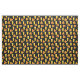 Black fabric patterned with pints of beer and slices of pepperoni pizza