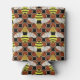 This cute pattern features a graphic motif of busy bees in black and yellow set against a stylised honeycomb design in warm orange and brown hues.