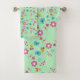 Bees, birds and flowers green pattern bath towel set