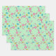 Bees, birds and flowers green pattern wrapping paper sheet
