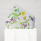 A pretty tissue paper decorated with a botanical pattern featuring drawings of bees, butterflies, dandelions and other wildflowers drawn in pencil, ink and painted with watercolor.