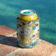 Bees Floral Honeycomb Yellow and Teal Can Cooler
