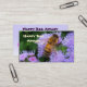 This business card is an advertisement for an apiary. It features a golden striped honeybee busily pollinating a purple ageratum blossom. Luminous green foliage add to the gorgeous, sunny summer feeling. All text can be customised to fit your personal business needs.