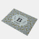 Welcome guests with this elegant bee-themed doormat. The design has a faux burlap look in shades of grey, yellow, and light blue-grey. The background includes a light honeycomb pattern with an original pattern of crawling bees. The central honeycomb shape says "welcome" with room for your personalised monogram and family name. The design also includes flower embellishments. Celebrate your love of honeybees with this bee-autiful doormat. Choose your own size.