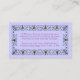 Decorative border of colourful honey bees and flowers surrounding your business name and contact information, with detailed product information or hours of operation on the back. Designed to match our "Bees in the Backyard" honey jar labels with the same design for a beekeeper, farmer or any company. Choose a different "Design Theme" to change the lavender blue background on the front and back. © dotpattern