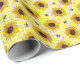 Bees, sunflowers, chequered, vintage pattern. wrapping paper