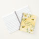 Yellow, white background with a honeycomb pattern. Decorated with light pink, cream colored tropical florals flowers, hibiscus and happy bumble bees. Templates for your name, title and text. A college ruled notebook, perfect for keeping your notes working from home.