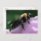 Macro of a Bumble Bee with pollen sideways on a pink flower.