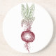 This coaster is printed with a vintage image of a beet..