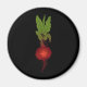 A vintage vegetable illustration of a beet is coloured in reds and greens.