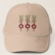 A vintage vegetable illustration of a beet is coloured in reds and greens.