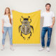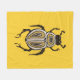 Fun beetle blanket with an ink illustration depicting a cartoon abstract beetle with decorative elements in white, gold and black over intense yellow background.
