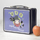 This is a standard metal lunchbox that appears to work just fine. We designed this box ourselves with an uploaded photo and custom text on the front and back. It looks absolutely beautiful except the front of the lunchbox is not centered like it shows in the photo. The print borders don't align with the inset flat part of the box where the preview photo online showed it perfectly centered in there. The back looks nice and centered though.