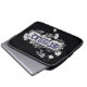 The sleeve is made of nice feeling material and seems very durable. I'm not sure how easy it'll be to clean, but the construction seems sound and the fabric is quick thick. I also like the double zipper. The printing is lovely and appears durable. The white on black contrast is nice, and the design very elegant.